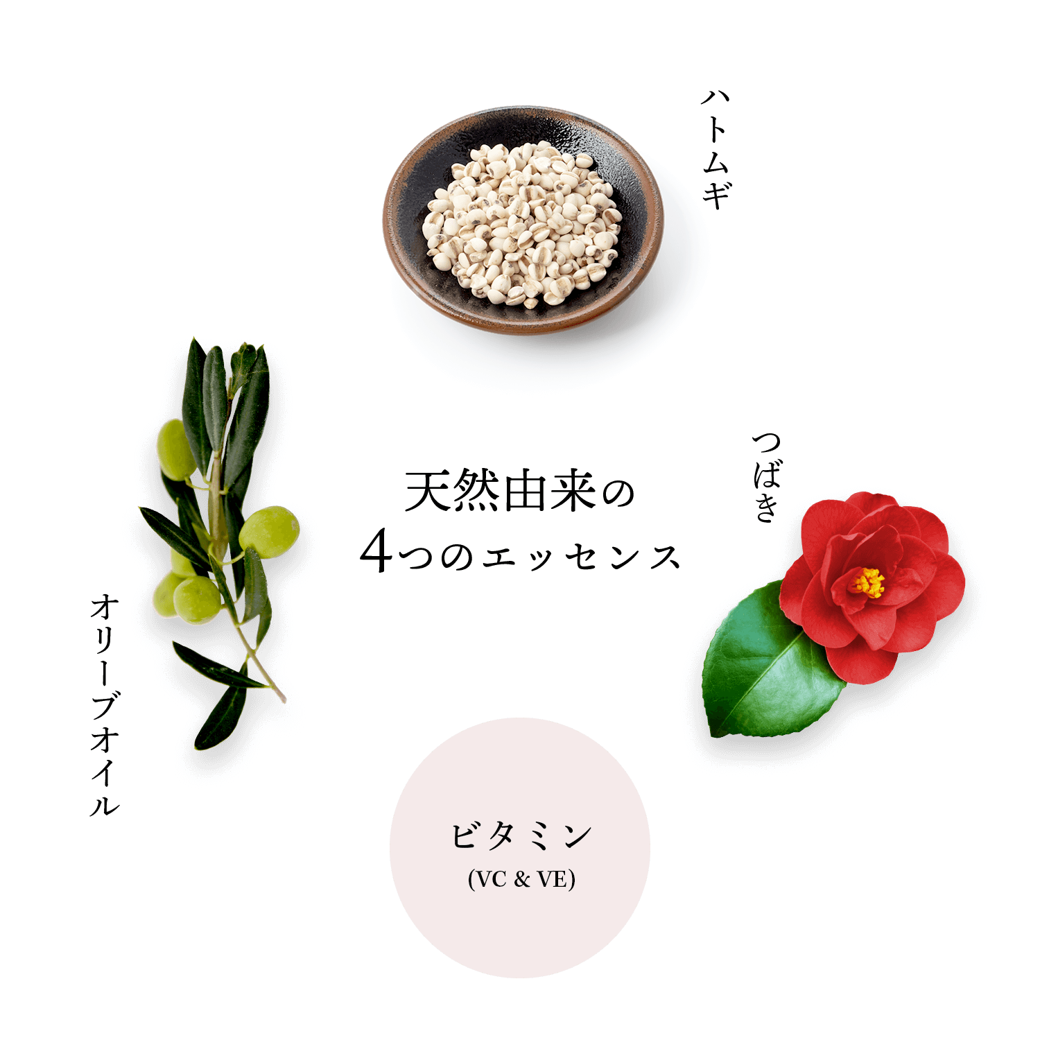 • 原材料名 オリーブ油(スペイン産)、はとむぎエキス末、ツバキ種子エキス末、ビタミンE含有植物油/ゼラチン、グリセリン、ビタミンC、L-シスチン、ミツロウ、グリセリン脂肪酸エステル